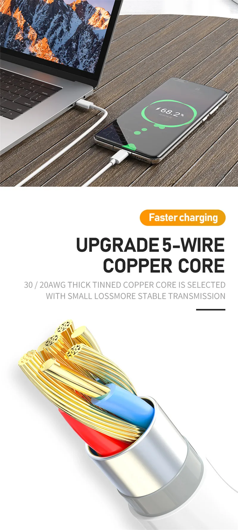 Кабель Acgicea 5A USB C-USB Type C QC 3,0 65 Вт для быстрой зарядки...