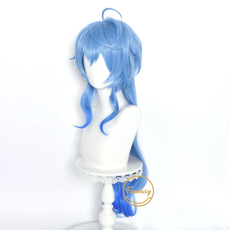 Ударопрочный парик GANYU Genshin, длинные синие термостойкие парики для косплея, парик для Хэллоуина + бесплатная шапочка для парика