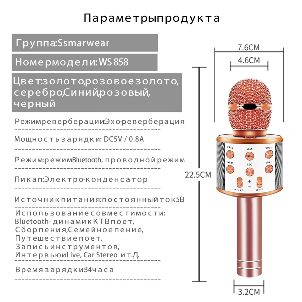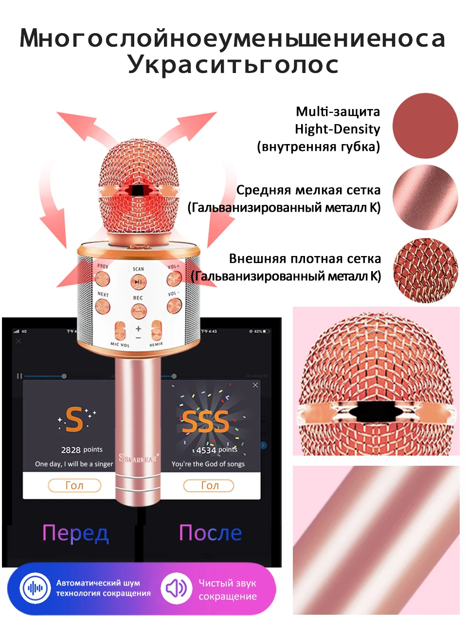 【Хорошая звуковая громкоговоритель-с профессиональными аудиопроцессорами, системой настройки и 3 слоями шумоподавления, усиление было хорошим и чистым, а также громкость. Вы можете использовать любое приложение для караоке или спеть вместе с вашими любимыми музыкантами или даже смотреть музыкальные видео на YouTube, чтобы спеть вместе с! Мы даем вам много выступлений. 【Забавный микрофон для караоке 】-интересный микрофон с танцующими огнями. Свет хороший и яркий, но не ослепительный, и они прыгают с музыкой. Функции изменения голоса-это весело! Они могут быть оригинальным голосом, детским голосом, женским голосом, мужским голосом. 【Зарядка длительная-Встроенный перезаряжаемый аккумулятор емкостью 1800 мА · ч позволяет прослушивать музыку в течение 12 часов или в течение 4 часов при полной зарядке. Он не слишком тяжелый и беспроводной. Можно взять в любом месте для мгновенного караоке вечерние. Вы будете наслаждаться пением с этим необычным микрофоном! 【Легко использовать-все, что вам нужно сделать, это подключить через Bluetooth настройки на вашем телефоне или ipad, а затем перейти на YouTube. Простое подключение к любому устройству, включая телефоны на базе Android iOS, ПК, ноутбуки и приложения. Прием Bluetooth является стабильным, а Расстояние соединения до 10 м. [Лучшие подарки] -- этот микрофон красиво оформлен и имеет много различных применений, давая любому человеку большой музыкальный опыт. Подходит для тех, кто любит спеть. Дети не только любят его, но и взрослые. Отличный подарок на Рождество, день рождения, вечерние, свадьбы, День отца, День матери, День Святого Валентина и другие праздники.
