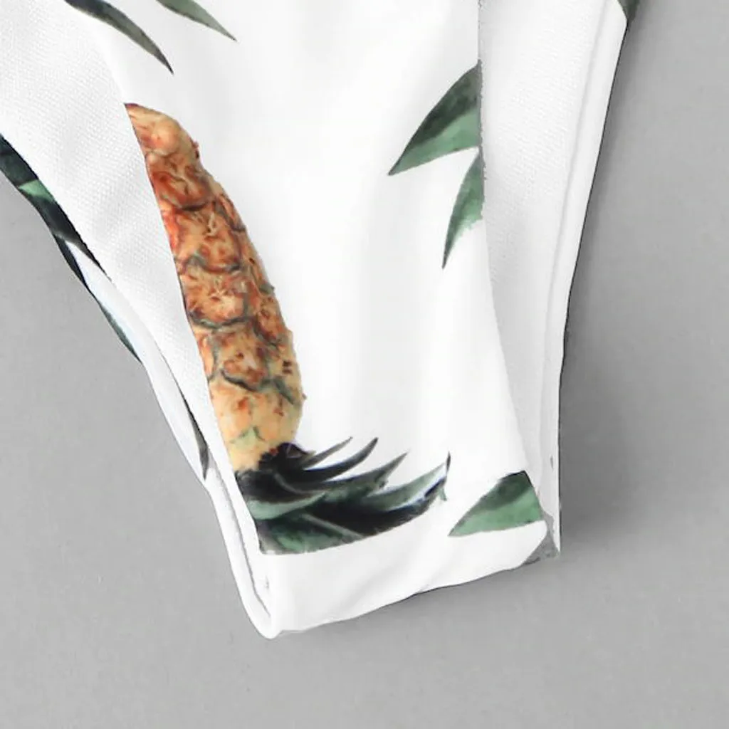 Женский купальник с принтом листьев, Бандажное бикини из двух предметов, купальник с разрезом, пляжная одежда, купальники