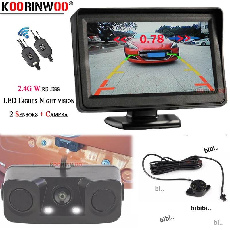 Беспроводной автомобильный цифровой ЖК-монитор Koorinwoo камера заднего вида Реверсивный паркмастер датчик парковки 2 система оповещения