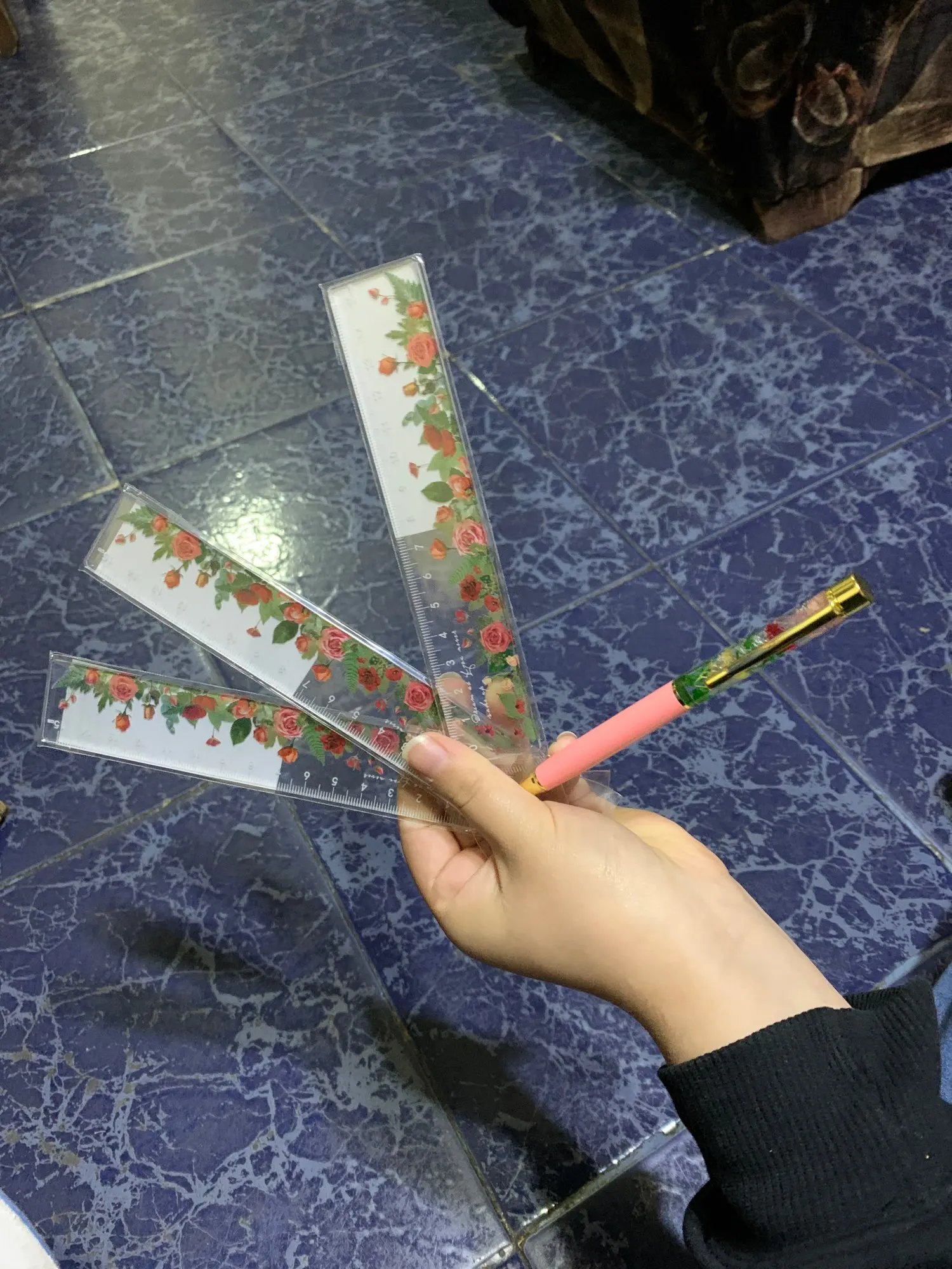 Хорошая линейка, красивые узоры, будьте осторожны, однако градации белые, поэтому мало видны на светлом бумаге. Удобно хранить в комплекте и подчеркнуть в классе.