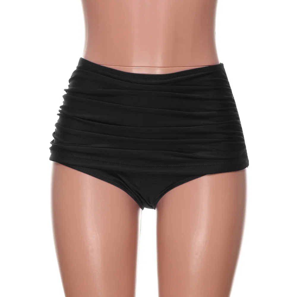 Женские плавки с высокой талией, бикини с рюшами, танкини, однотонные Классические плавки, размера плюс, Badmode