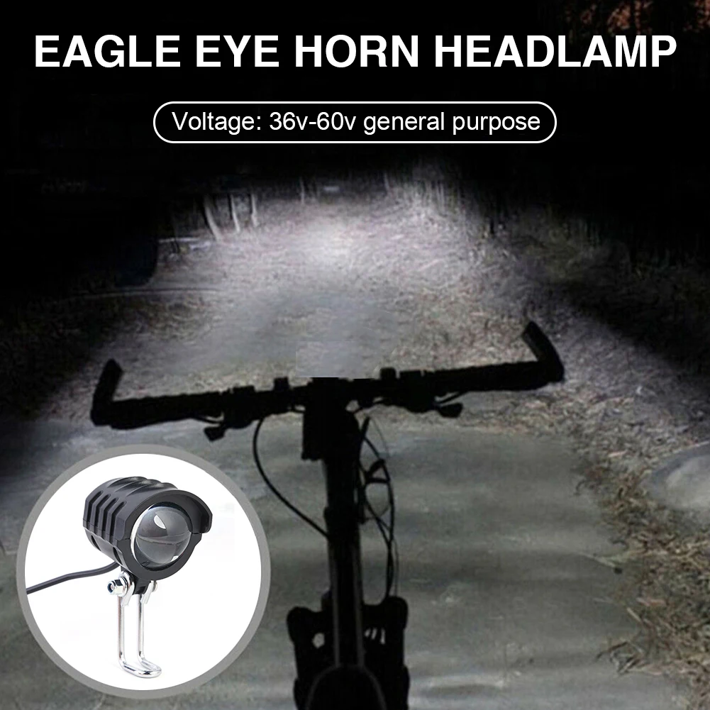 Водонепроницаемая головсветильник лампа с гудком, 36-60 в, для электроскутера, мотоцикла, портативная светодиодная передсветильник фара для электрического велосипеда, велосипедные аксессуары