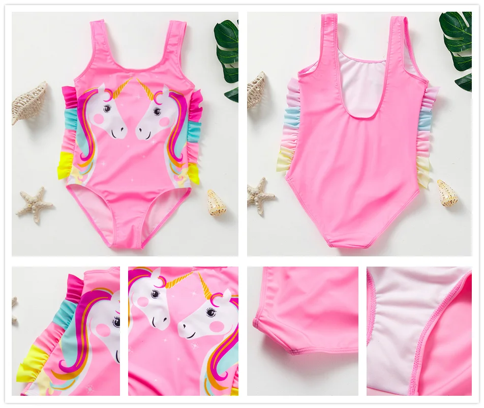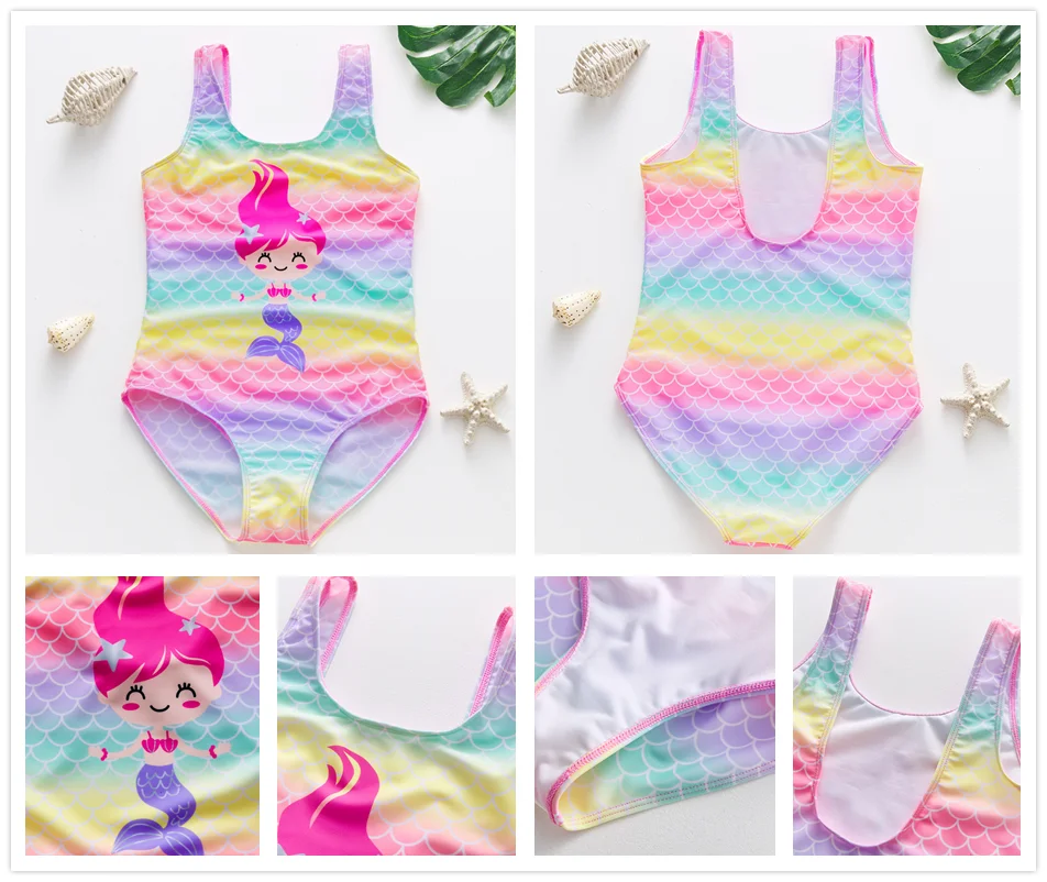 2021 новые купальники для девочек, купальные костюмы с принтом фламинго, цельные пляжные костюмы с открытой спиной, для детей 3-12 лет, 9071