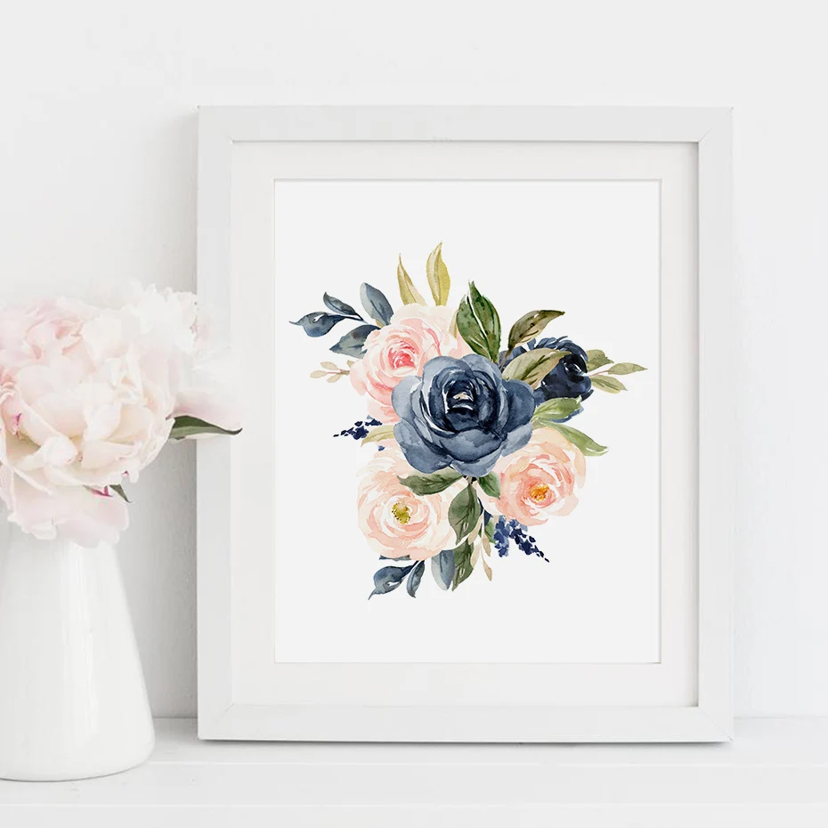 Плакат акварельный с голубыми цветами, настенная Картина на холсте ...
