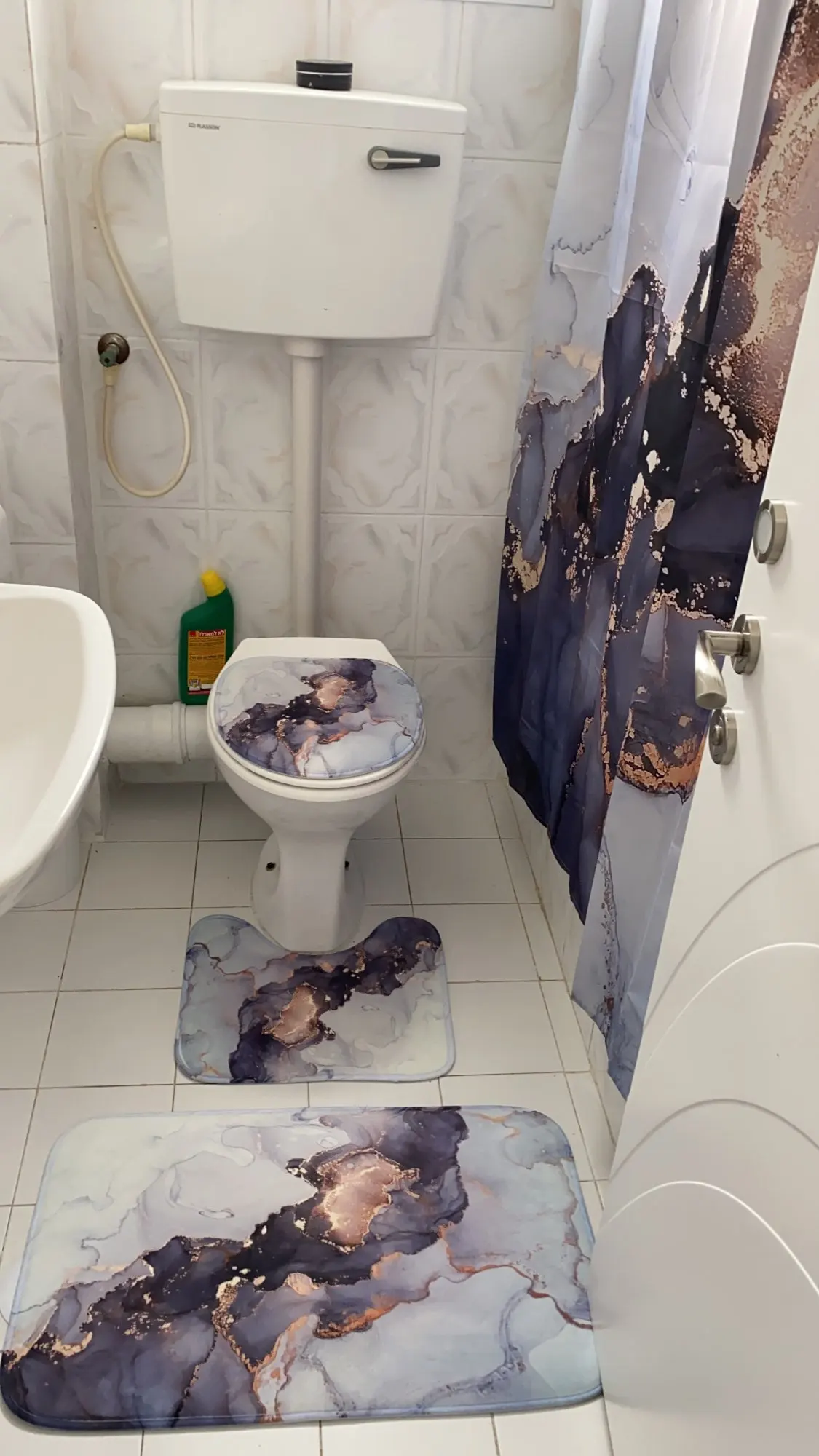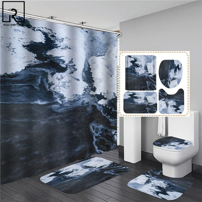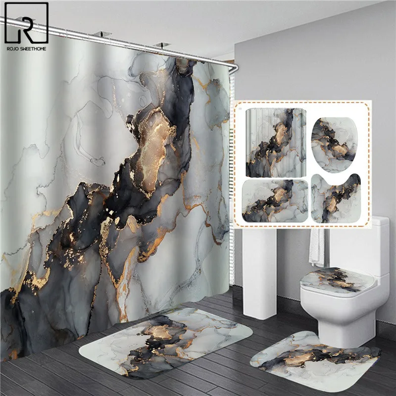 Набор из занавески для душа с мраморным узором и ковриков для ванно...
