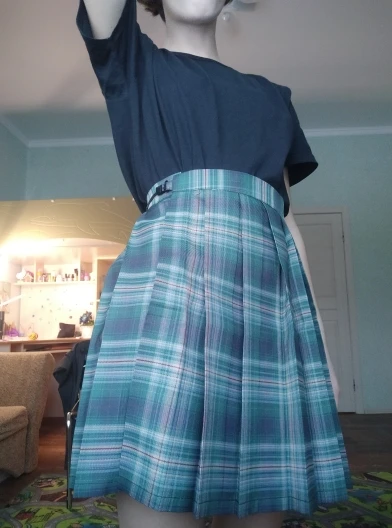 Юбка на фото. Материал плотный, на рост 176 не короткая, бантик в комплекте, на бёдра 88 по бокам складки расходятся и юбка немного топорщиться, наверное можно было взять размер и больше, благодаря корректирующему пояску в талии 65 см сидит хорошо