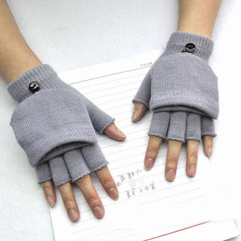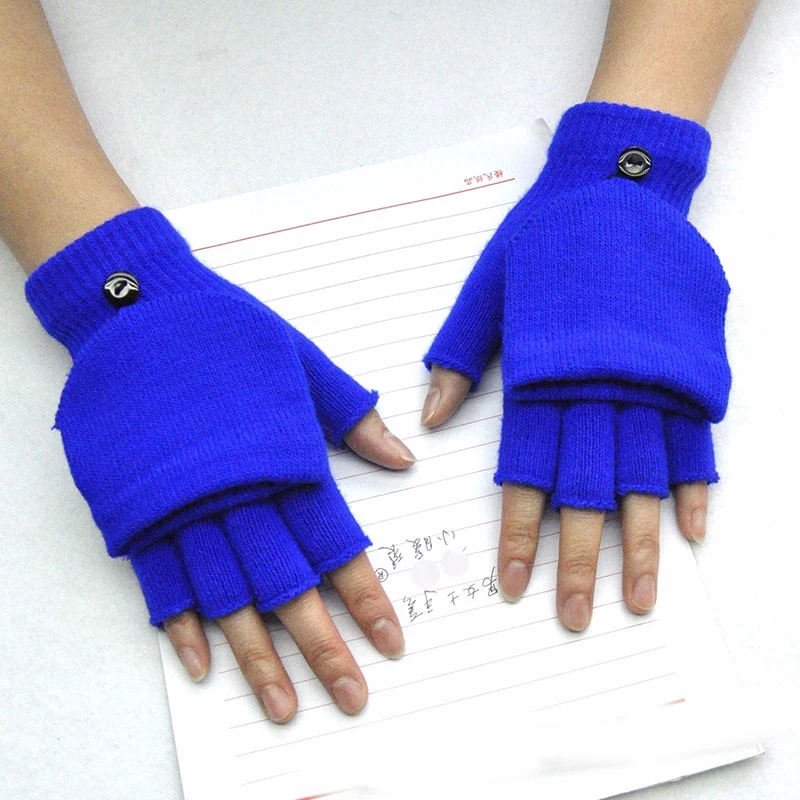 Зимние перчатки Модные Детские мужские женские зимние теплые милые вязаные варежки-трансформеры с откидной крышкой и без пальцев перчатки