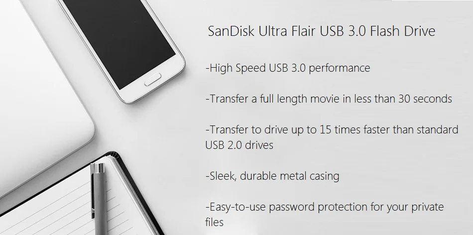 Стильный и прочный С прочный металлический чехол, двойной флеш-накопитель SanDisk Ultra Flair флеш-накопитель USB 3,0-это как гладкий и готов к ручка неожиданных ударов.