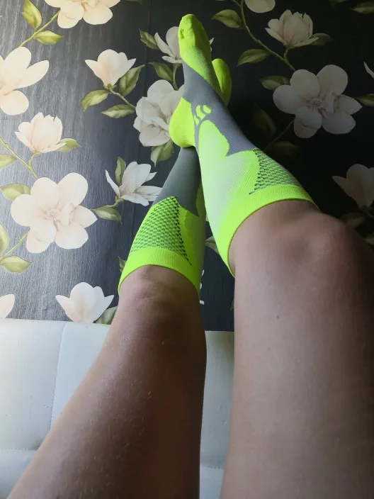 Цвет соответствует описанию. Носки не слишком толстые или слишком тонкие, они хорошо сидят, а компрессия нормальная. Я ношу 38,5 Европейский размер обуви и купил s/m. Доволен