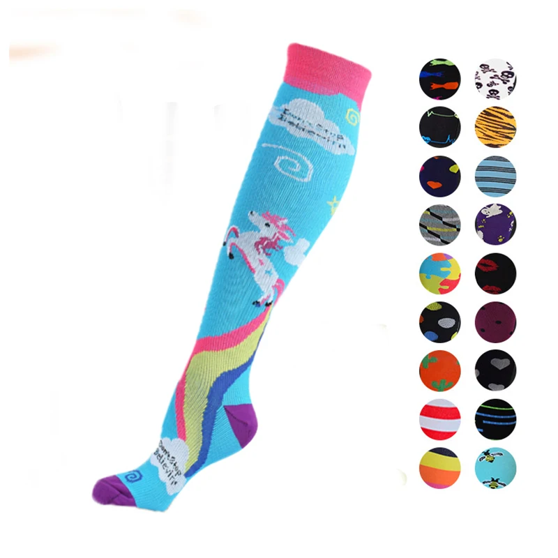 Носки компрессионные мужскиеженские, длинные носки с принтом животных, лисы, единорога, зебры, для бега, велоспорта, на Хэллоуин