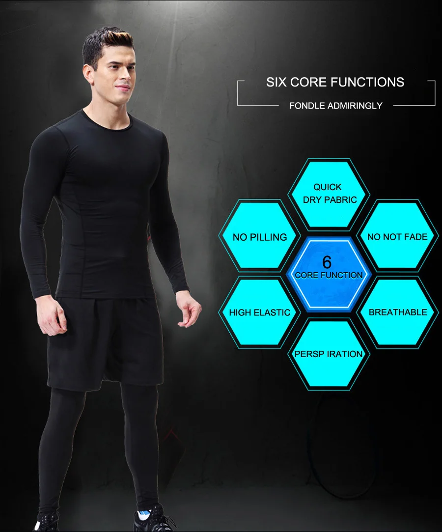 Мужской комплект для бега, леггинсы, термобелье, Спартанский компрессионный костюм для фитнеса, ММА, быстросохнущие трико, спортивный костюм