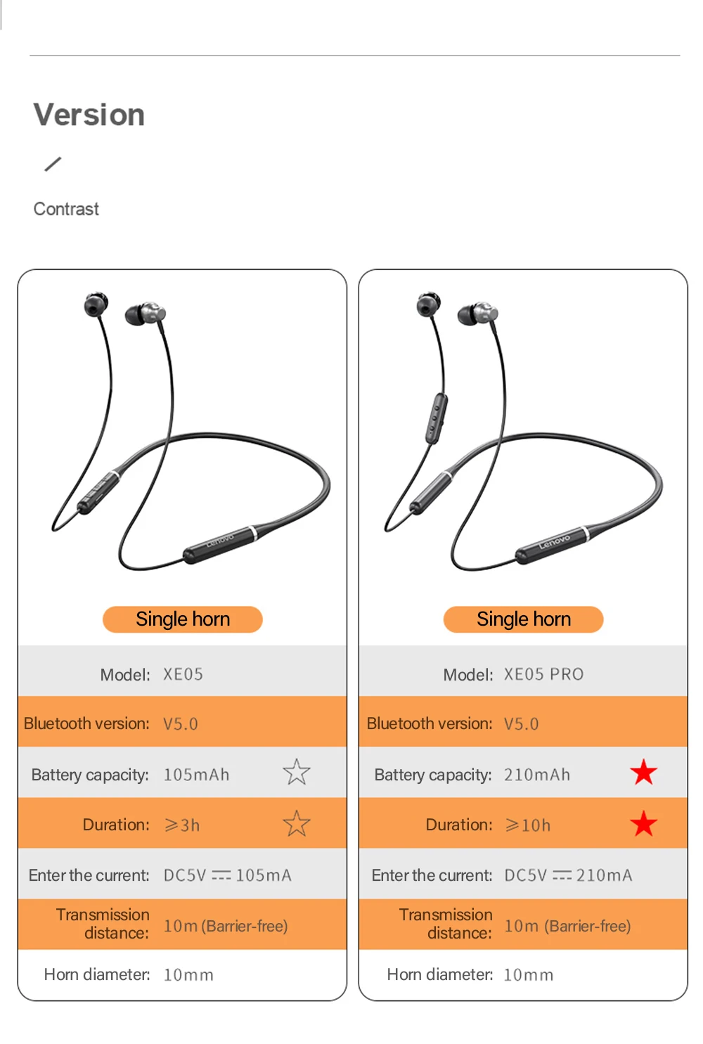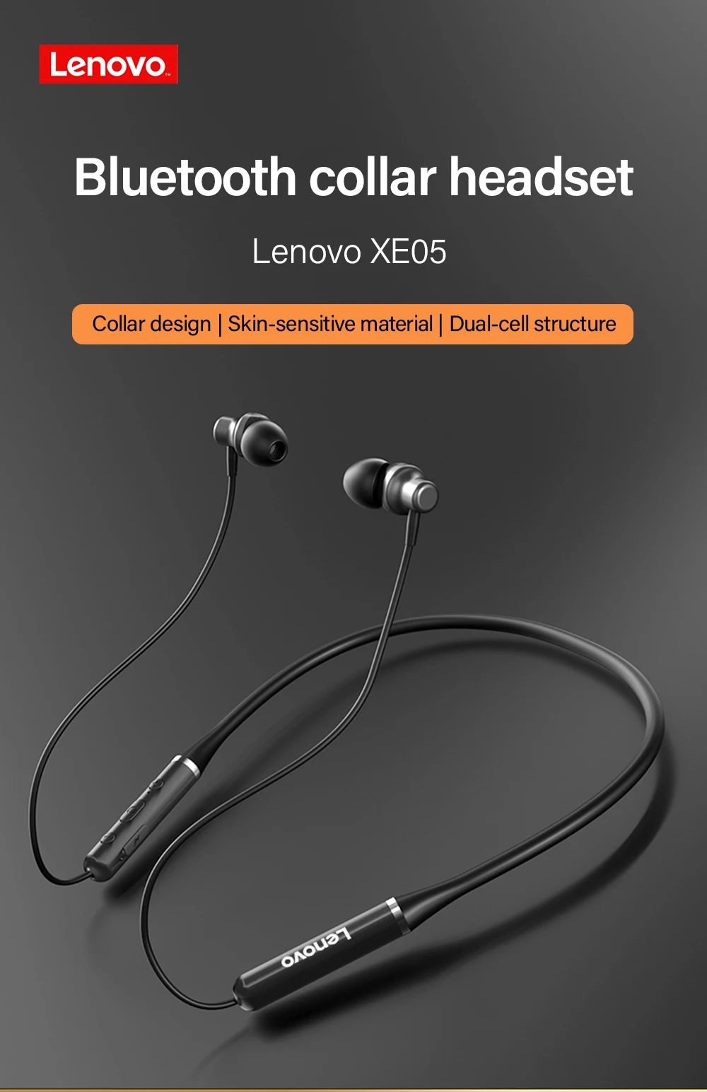 Наушники Lenovo XE05 Pro Bluetooth 5,0, магнитные наушники с шейным ободом, IPX5 водонепроницаемые спортивные Беспроводные наушники с микрофоном, 210 мАч