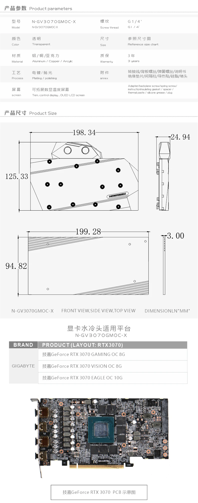 Видеокарта Bykski для Gigabyte GeForce RTX 3070 GAMINGVISIONEAGLE 8...