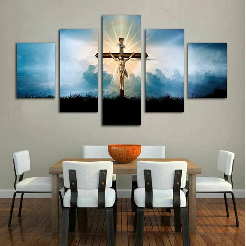 Домашний декор, холст, печать, 5 шт., HD, христианский крест на гор...