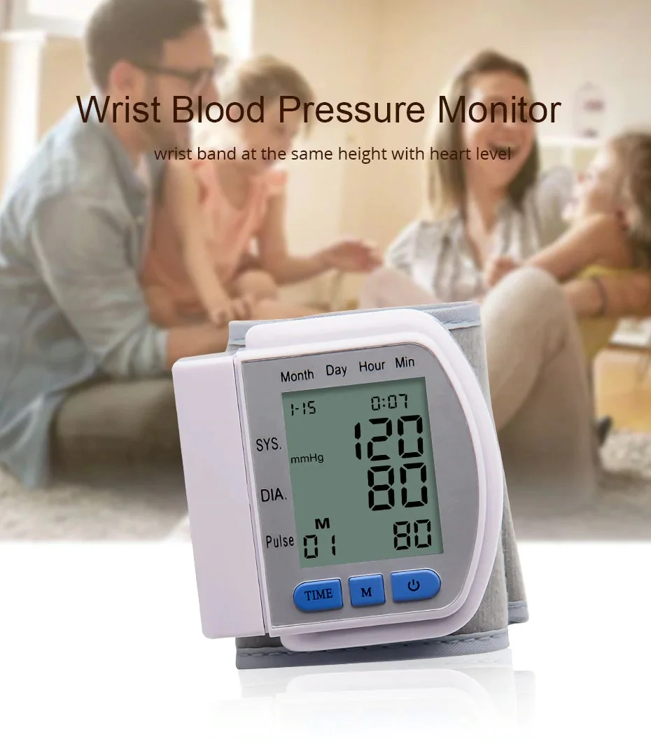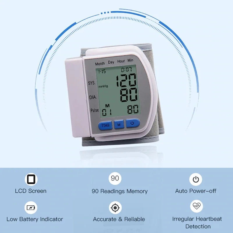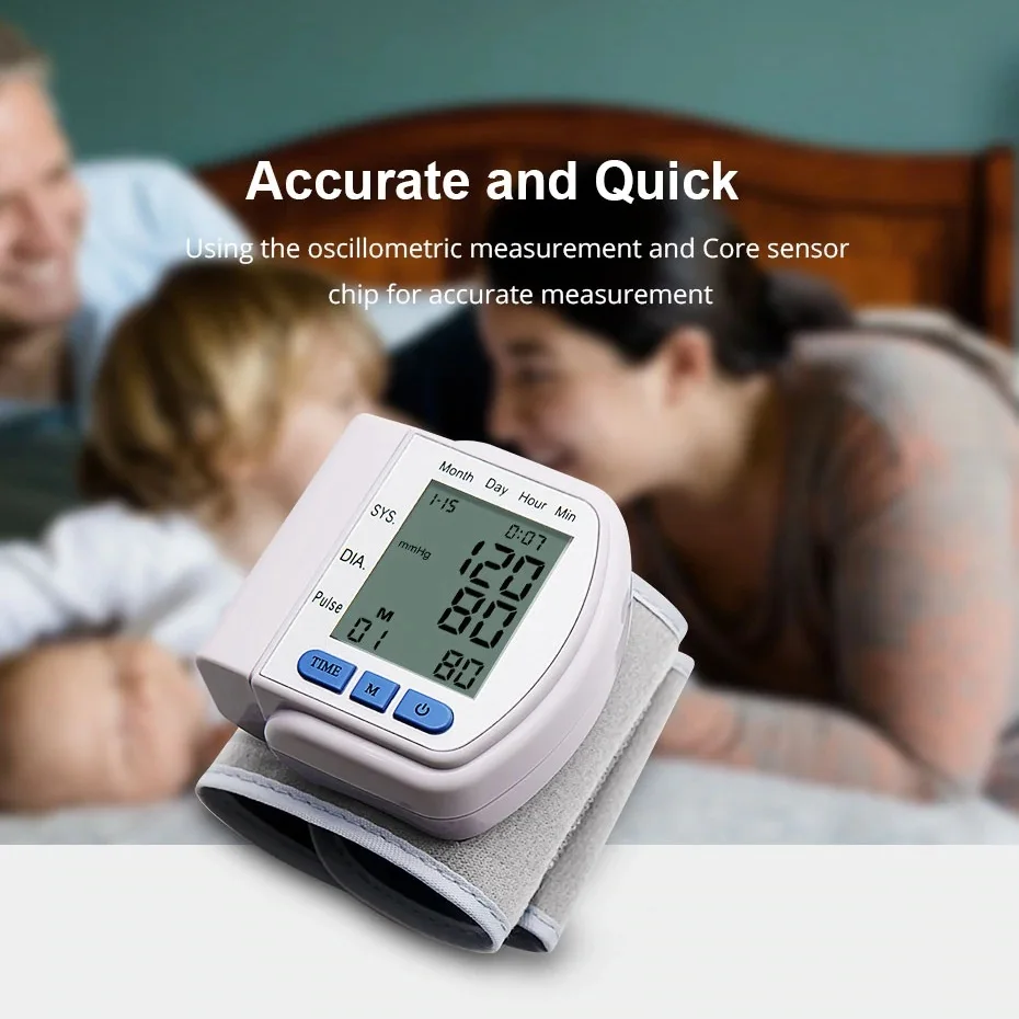 Автоматический цифровой тонометр на запястье, прибор для измерения артериального давления, сфигмоманометр, измеритель пульса и давления