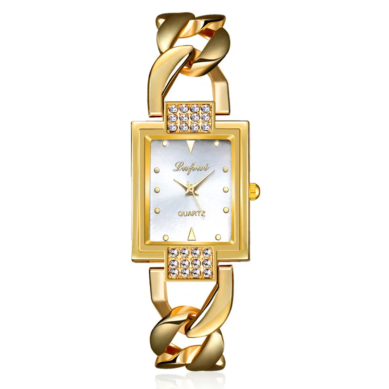 Часы наручные женские из нержавеющей стали, роскошные золотистые с кристаллами и стразами, с гарантией 2020