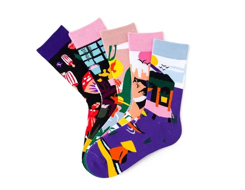 Женские носки, осень 2020, новые модные хлопковые носки, веселые за...