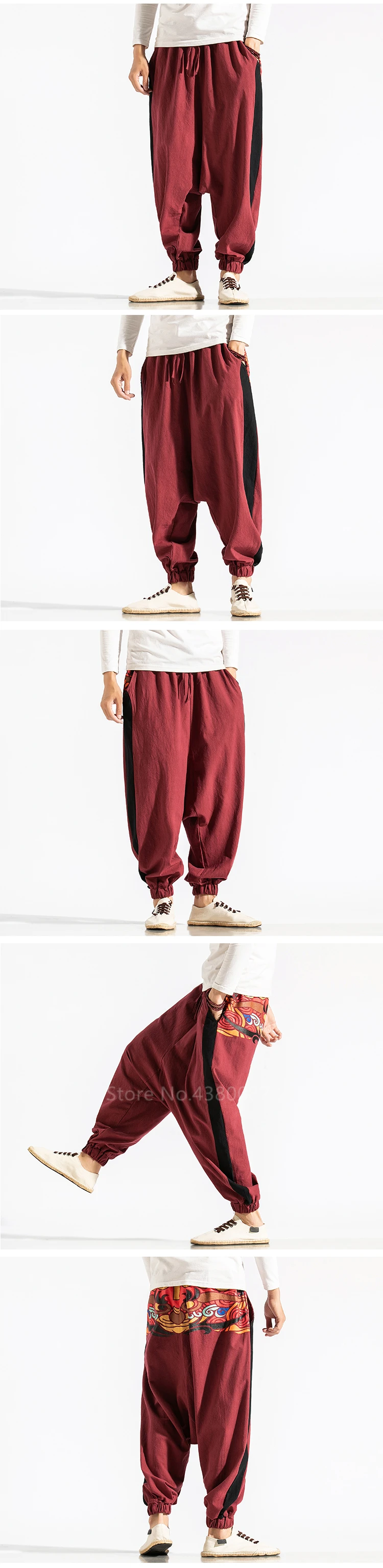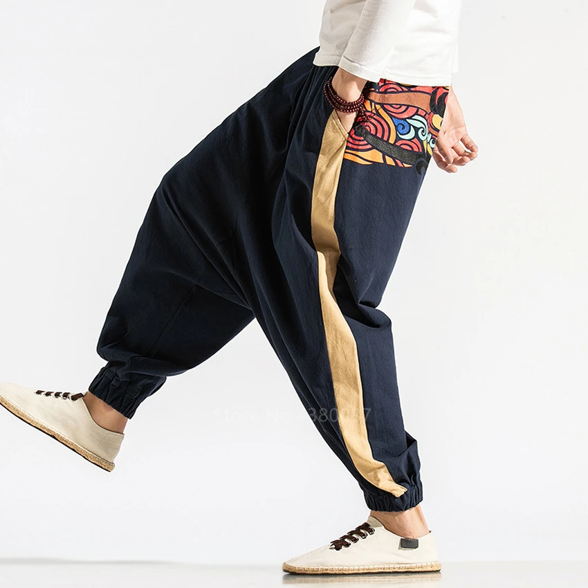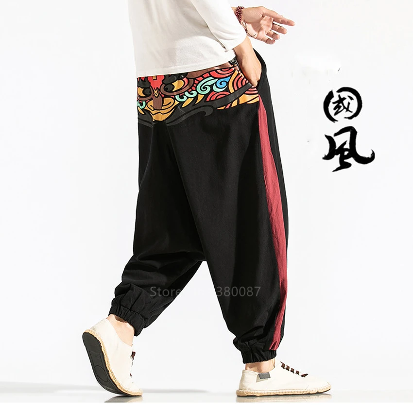 Мужская мода японский Стиль укиё принт костюм самурая штаны-шаровары брюки Haori в винтажном стиле, брюки для отдыха, свободного кроя с эластичной резинкой модная одежда Азиатский