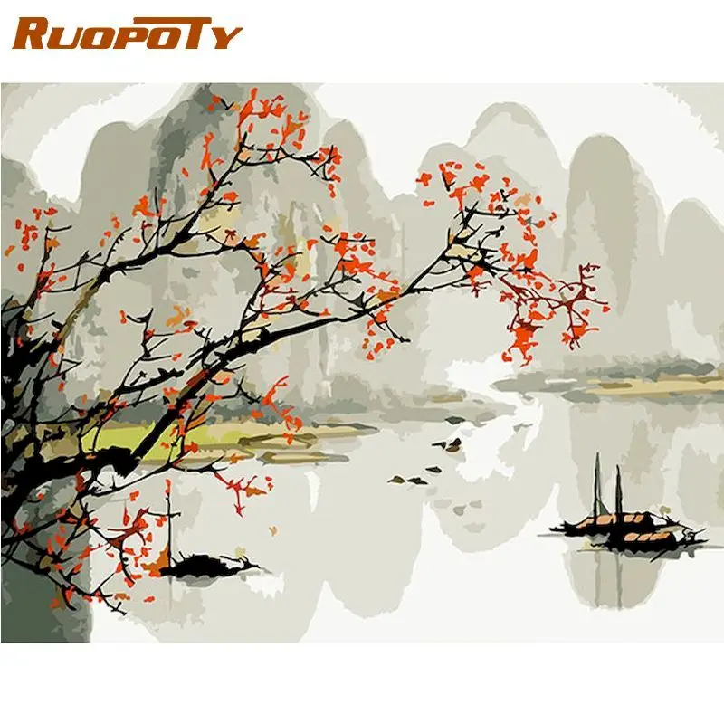 RUOPOTY горный водный пейзаж, фотообои для взрослых и детей, ручная роспись, 40x50 см, рамка на холсте, домашний декор