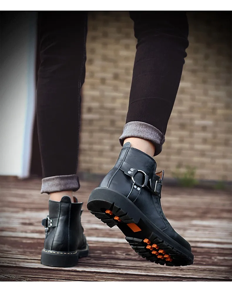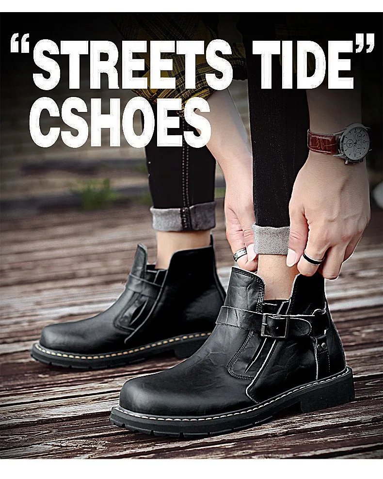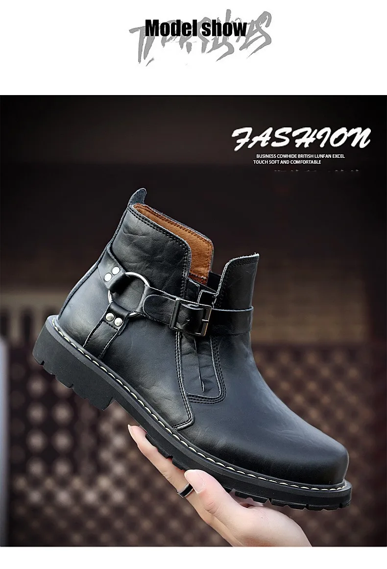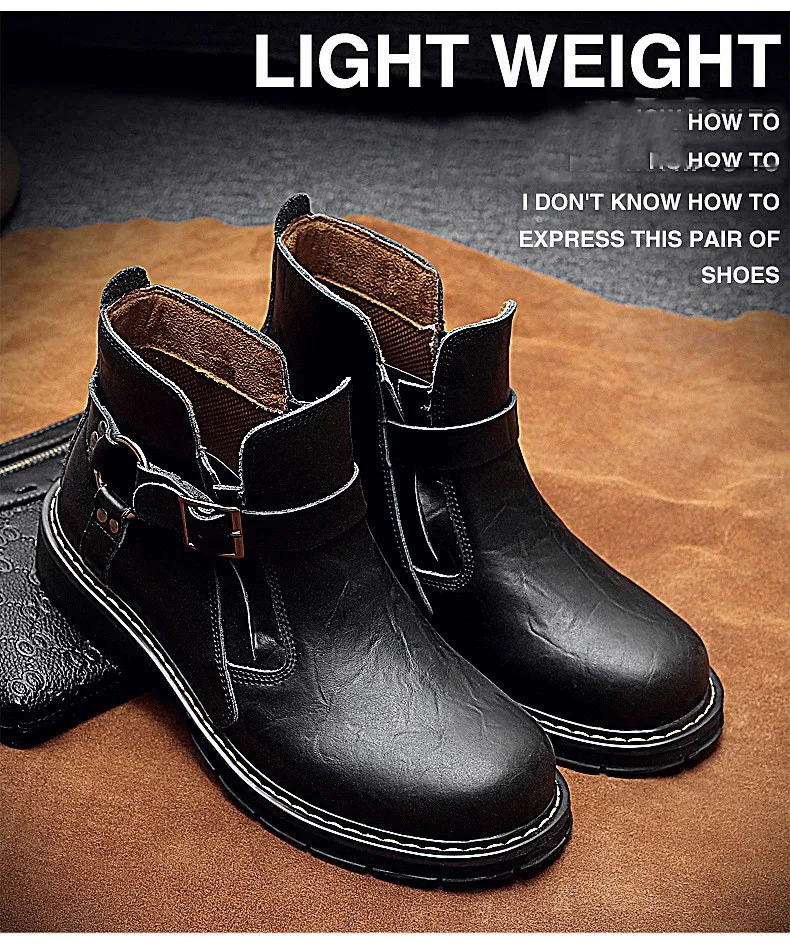 Мужские короткие ботинки из ПУ кожи, с круглым носком и пряжкой