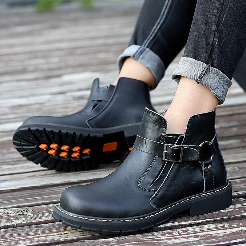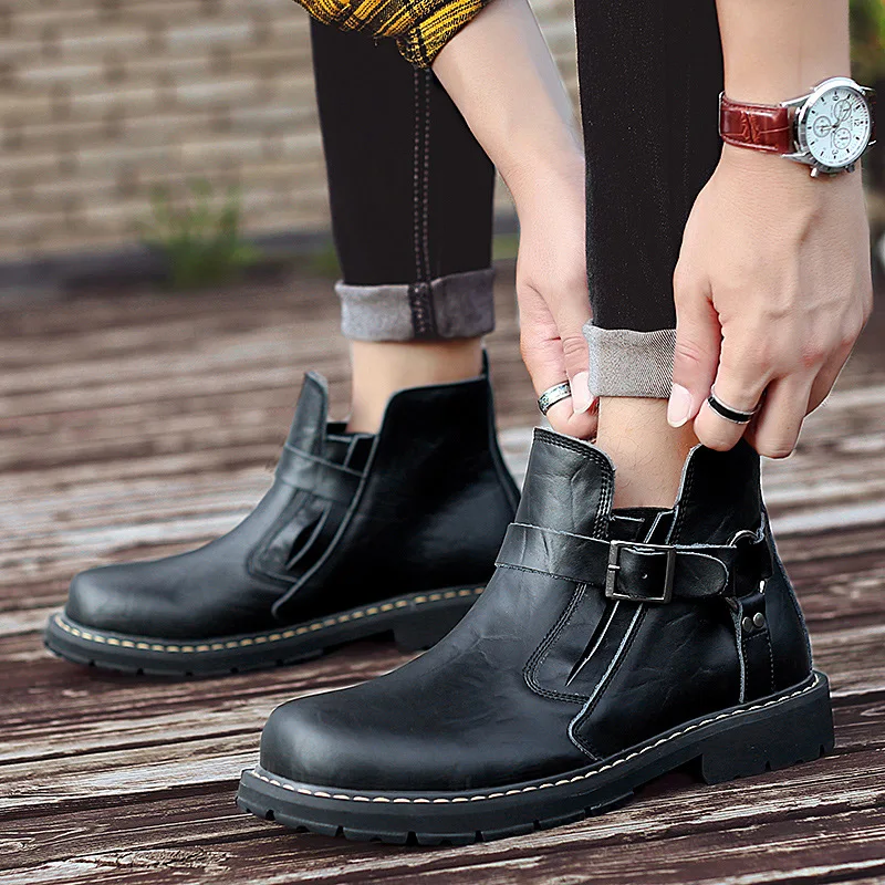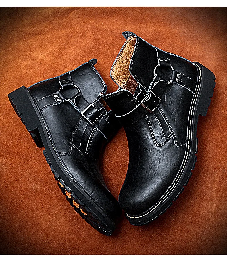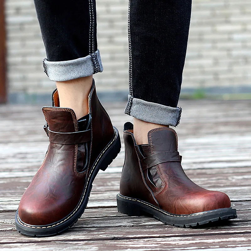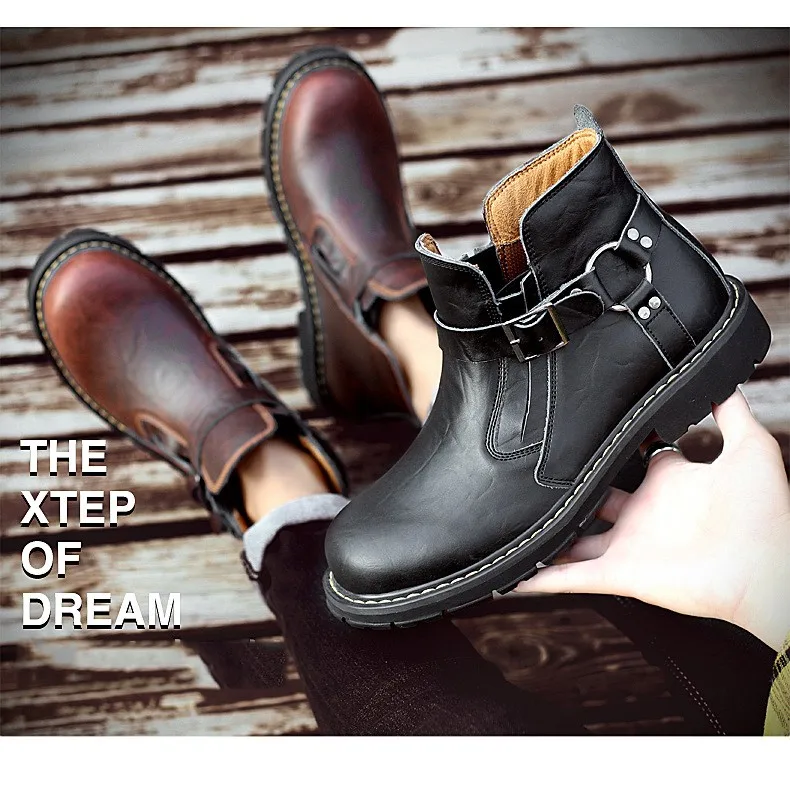Мужские короткие ботинки из ПУ кожи, с круглым носком и пряжкой
