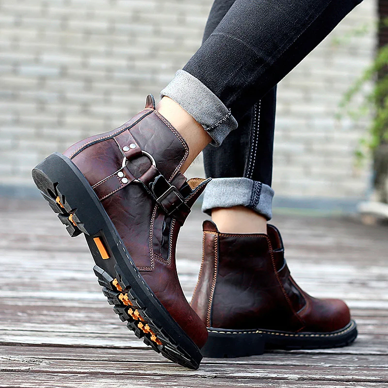 Мужские мотоциклетные ботинки до щиколотки, коричневые ботинки из н...