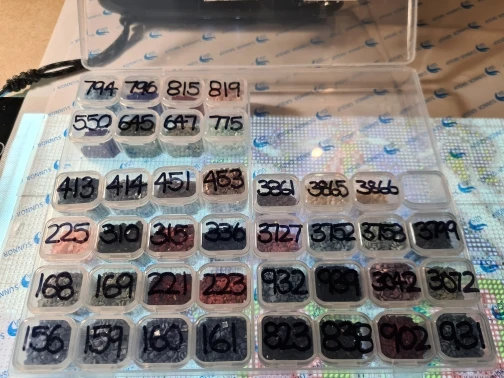 Dommage pour ma note. J'aime beaucoup le vendeur, mais aucune communication possible. Il me manque un sachet de diamand. Signalé au vendeur et il ne m'a jamais répondu. Heureusement j'en ai d'une autre toile.