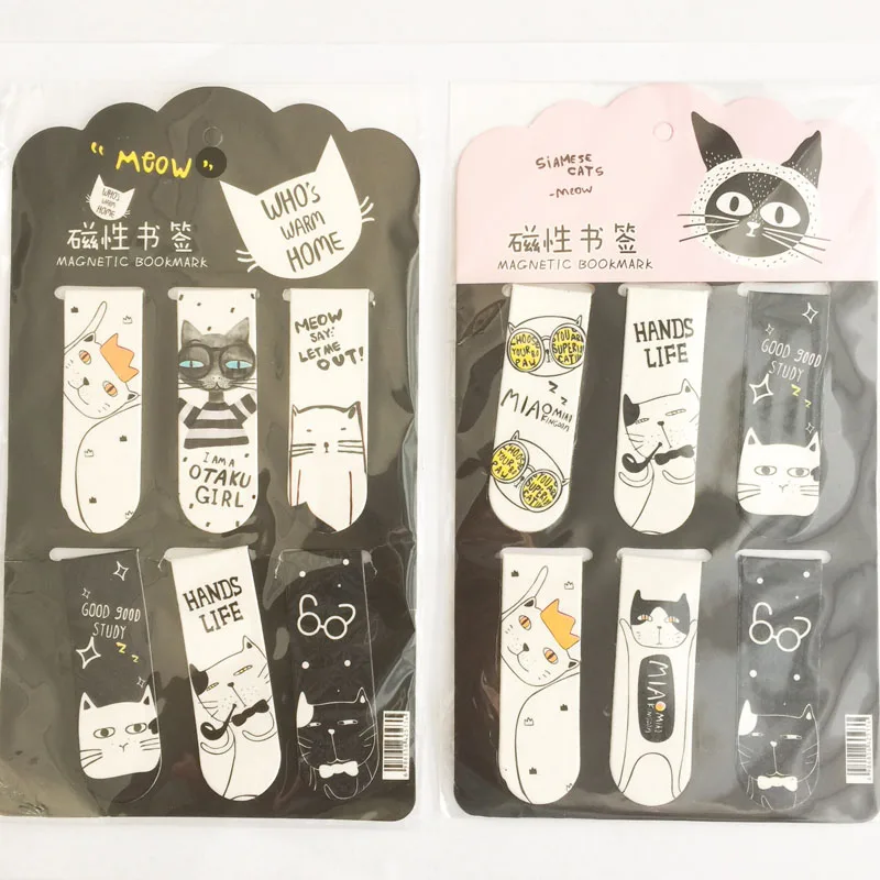 6 шт.компл. Kawaii Black Cat магнитные закладки для книг маркер для страниц канцелярские товары