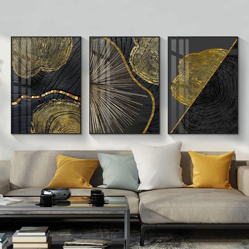 Абстрактная живопись на холсте без рамки с черными и золотыми линия...