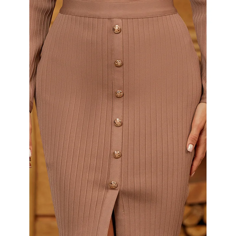 Бандажное платье, коричневое, с V-образным вырезом, с длинным рукав...