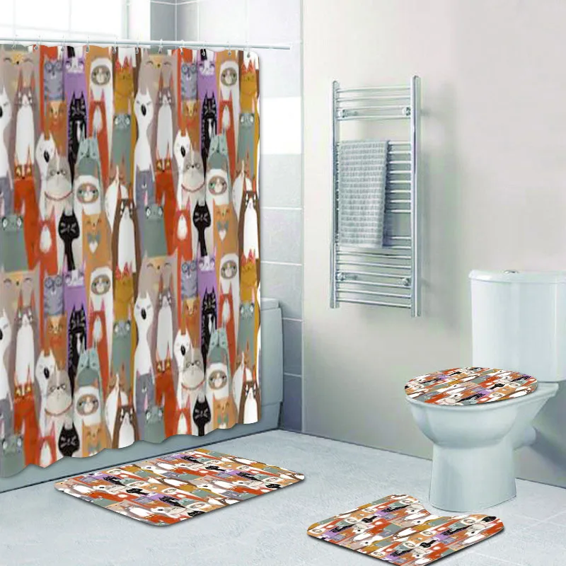 Забавная душевая занавеска С мультяшными кошками для ванной комнаты, водонепроницаемая ткань, занавеска для ванны с котами, котятами, коврики, коврики, домашний декор для домашних животных