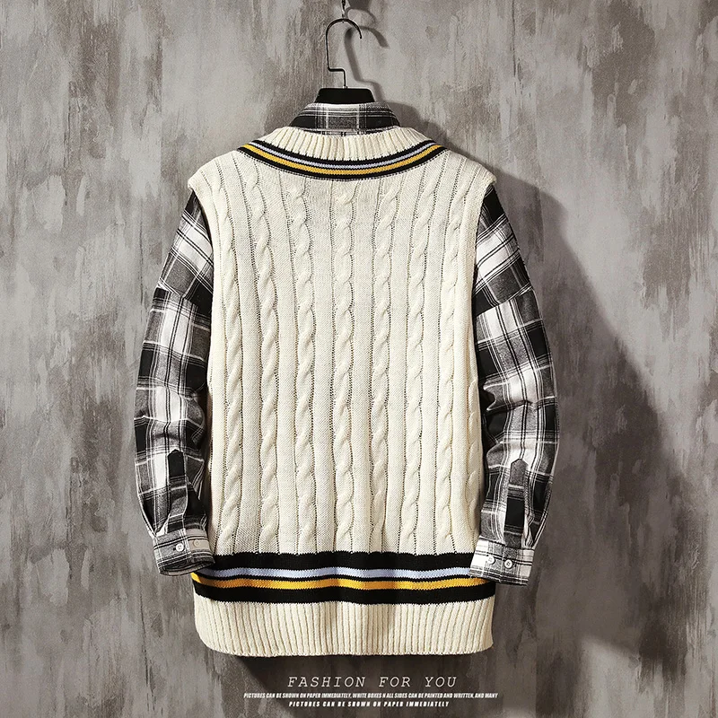 Свитер жилет для мужчин с v-образным вырезом Лоскутные трикотажные пары размера плюс 3XL оверсайз Harajuku жилеты Ins Chic корейский стиль Прямая поставка