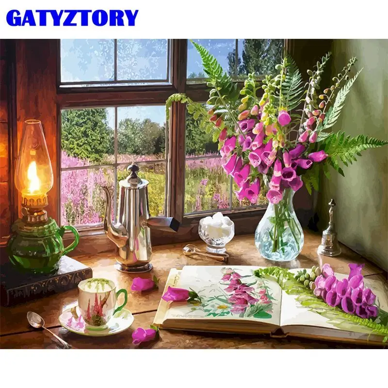 GATYZTORY набор цветов для рисования по номерам DIY в раме, холст, ...