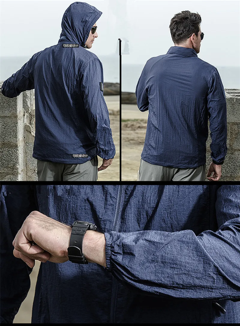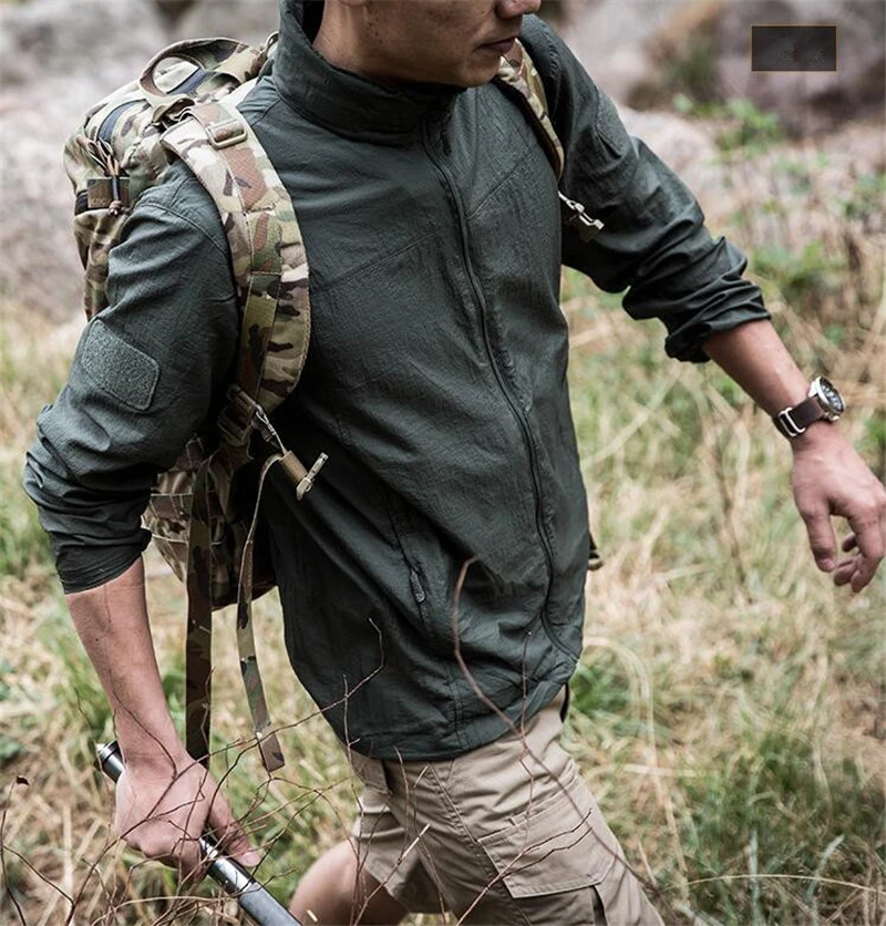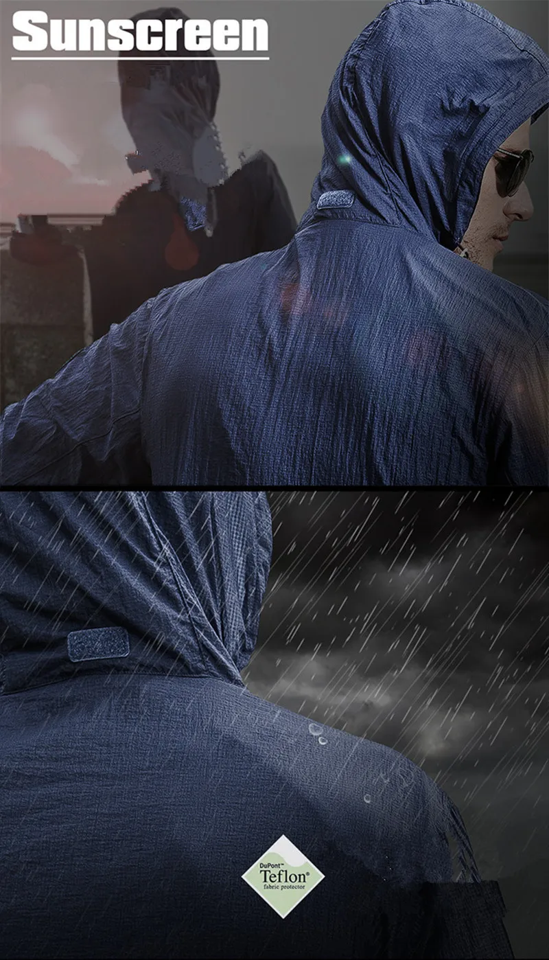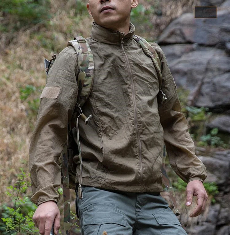 Летняя быстросохнущая тактическая кожаная куртка для мужчин, портативное пальто с капюшоном, тонкая ветровка, Солнцезащитная Водонепроницаемая армейская военная куртка 5XL