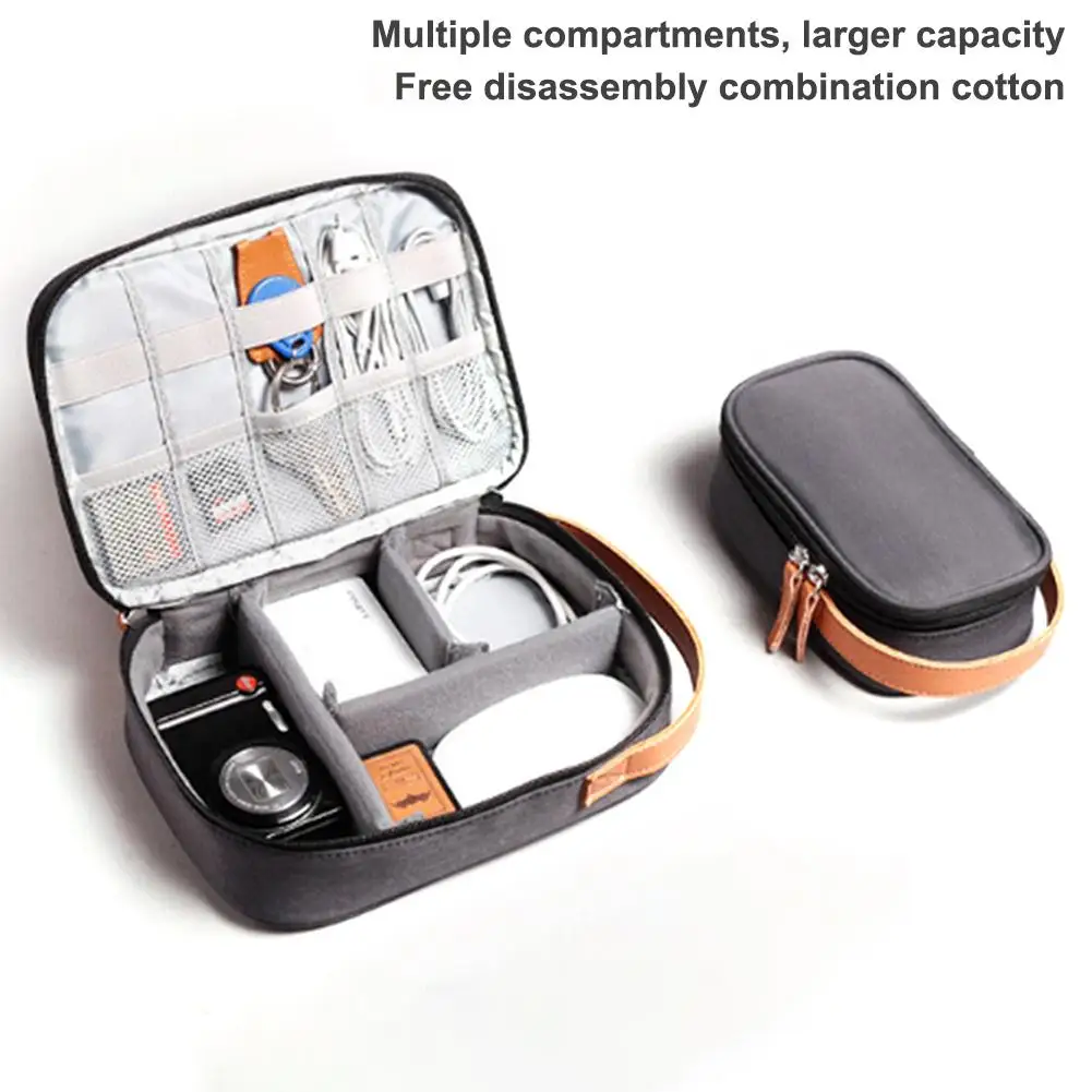 Серая цифровая сумка для хранения USB органайзер для кабеля данных, наушников, Проволочная сумка, ручка, внешний аккумулятор, Дорожный комплект, чехол, аксессуары для электроники