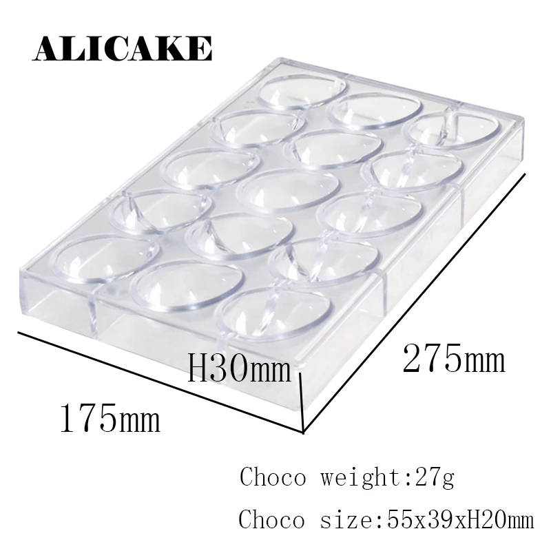 Поликарбонатные формы для шоколада с пасхальными яйцами, 15 полостей, 27 г, 55 х39 х20 мм, Пластиковая форма для выпечки шоколада