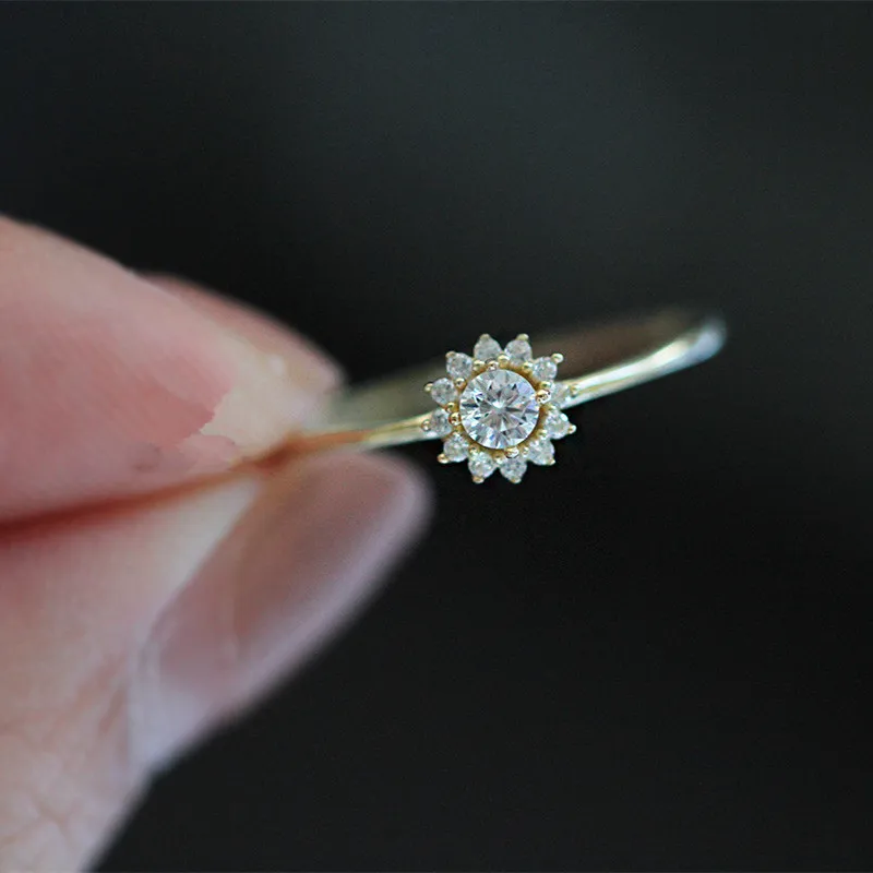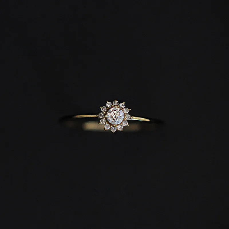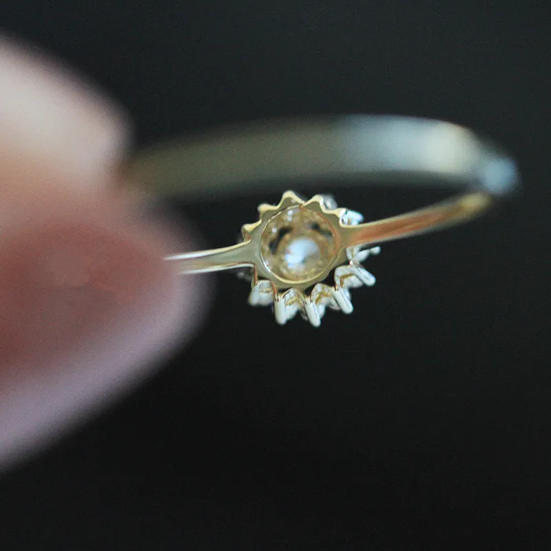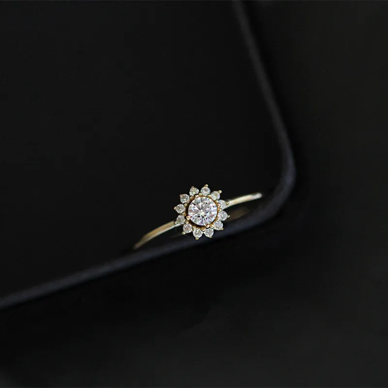 Женское кольцо с подсолнухом в Корейском стиле, серебро 925 пробы с покрытием из кристаллов 14 к, подарочное Ювелирное Украшение