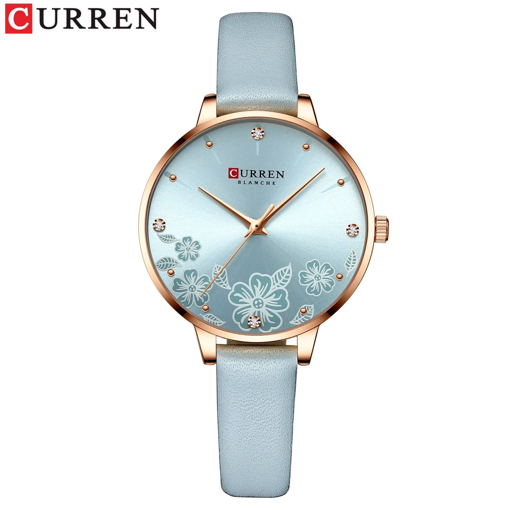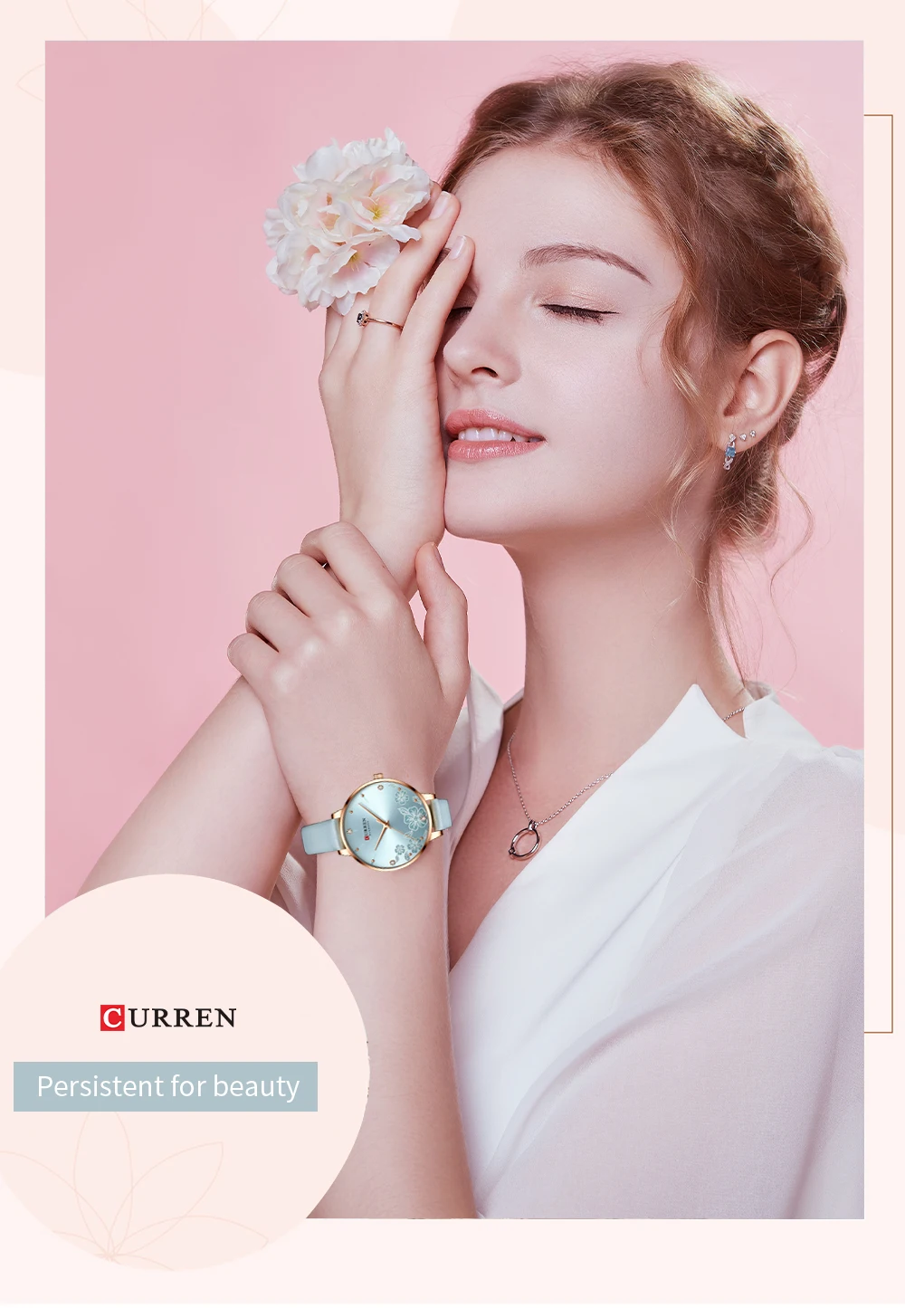 CURREN часы для женщин Лидирующий бренд кожа кварцевые наручные часы Роскошный дизайн часы для дам очарование цветы циферблат Montre Femme