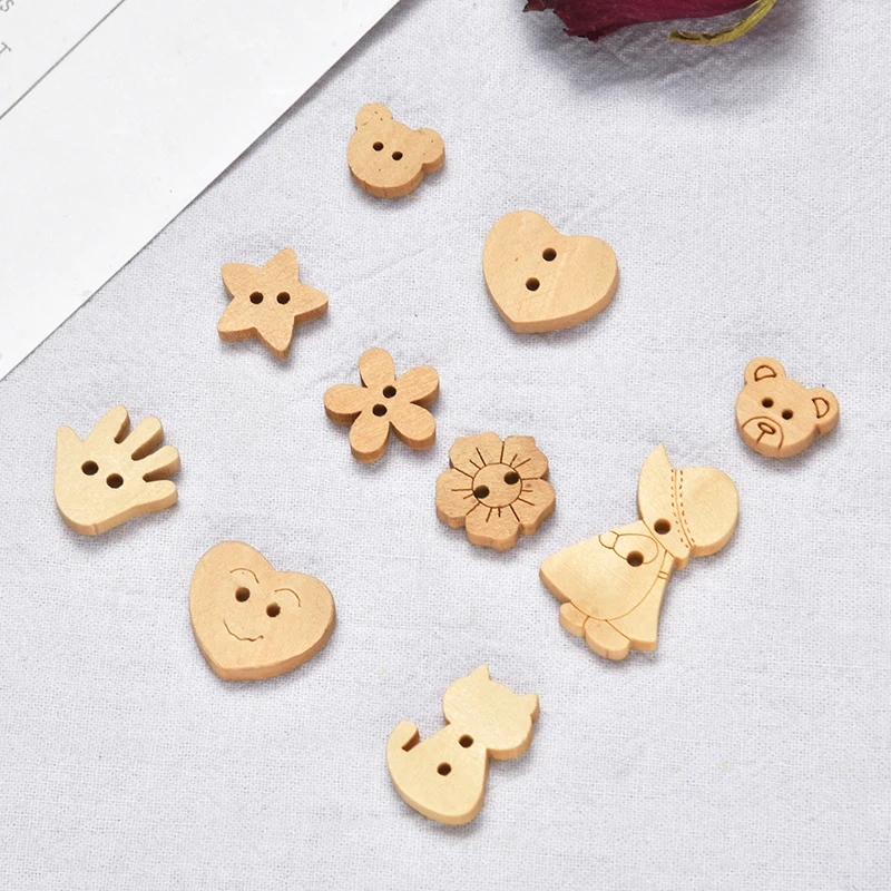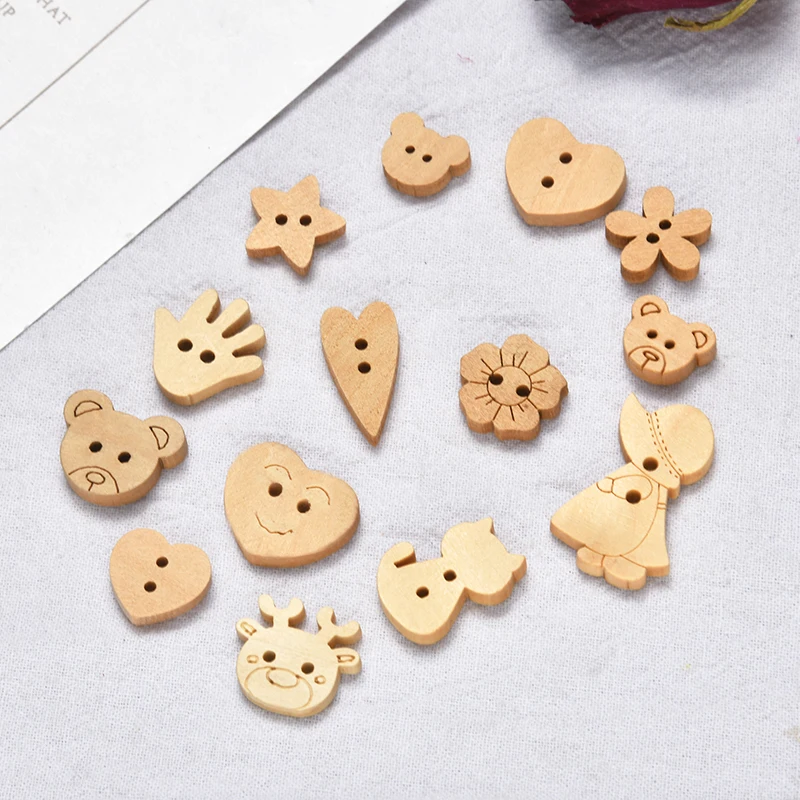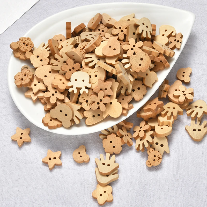 100 шт. оптовая продажа Смешанные Круглые Мультяшные деревянные бусины Сделай Сам 15-20 мм Любовь Медведь Бабочка россыпью бусины пуговицы ювелирные аксессуары