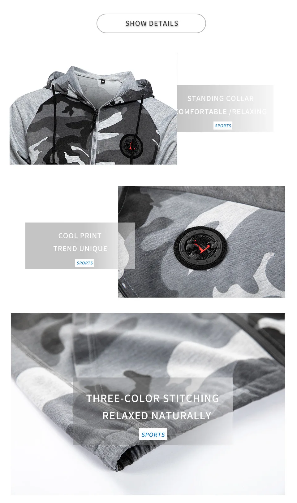 Спортивный костюм мужской из толстовки с капюшоном и штанов, камуфляжный