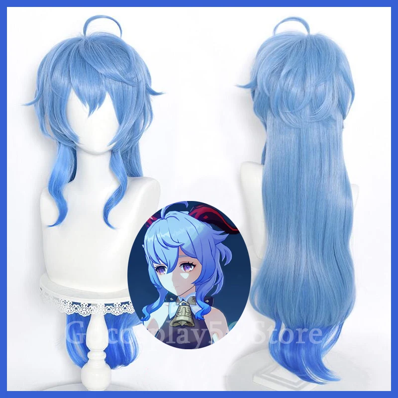 Genshin воздействия ганю парик Косплэй градиентный синий длинные прямые волосы, вьющиеся храмов волнистые синтетические Жаростойкие накладные волосы для взрослых на Хэллоуин в наличии