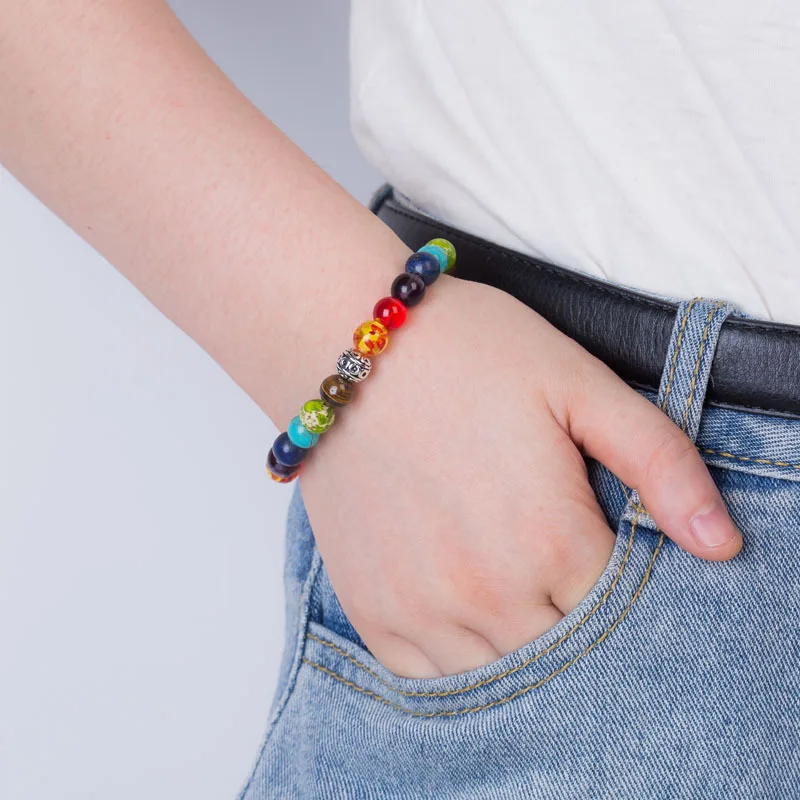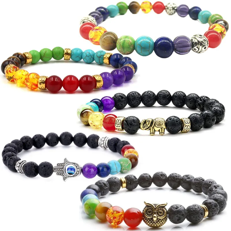 Браслеты из лавового камня для женщин и мужчин в виде чакры браслеты индийский Йога ювелирные изделия Счастливый слон "Рука Фатимы", шарма бусины прядь Braclets