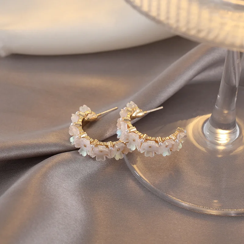 Серьги-кольца женские, не проколотые, с цветами, элегантные, 2021