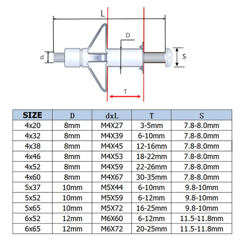 Пустотелые стены M4X20 120, якорный комплект шт., гипсокартонные штекерные дюбели для гипсокартона, расширительные анкеры, отверстия для гипсокартона