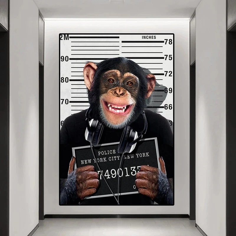 Забавная картина с изображением обезьяны, животных, холст, креативн...