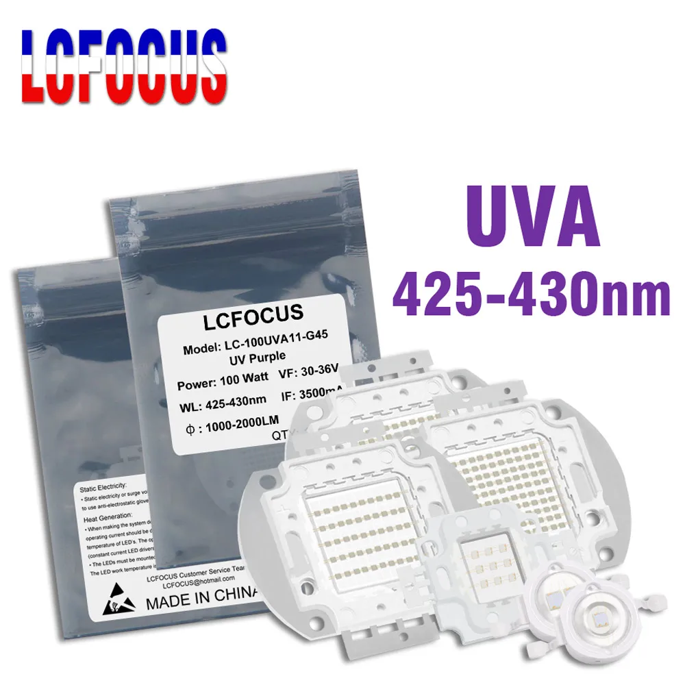 УФ-фиолетовый 3W 5W 10W 20W 30W 50W 100W 300 W 500W 425nm 430nm светодиодный COB чип для 50 100 300 Вт светильник для изготовления украшений своими руками, ультрафиолетовая лампа