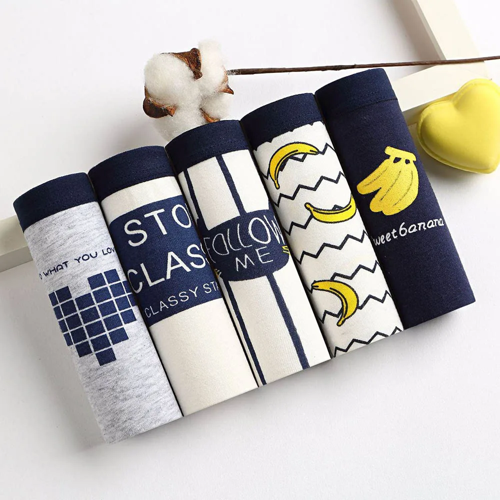 5 шт.партия; Хлопковые трусы; Пальто в полоску для девочек-подростков трусики женское нижнее белье с низкой талией, нижнее белье с рисунком бананов для милых девочек; С глубоким