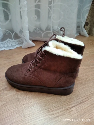 По размерной сетке хорошо подошёл мои размер, который ношу обычно. Заказывала ботинки серого цвета, а по итогу в жизни они какие-то серо-синие, цвет отличается. Качество более-менее, сезон-два думаю продержатся. Есть неприятный запах. Посылка дошла за полтора месяца.
